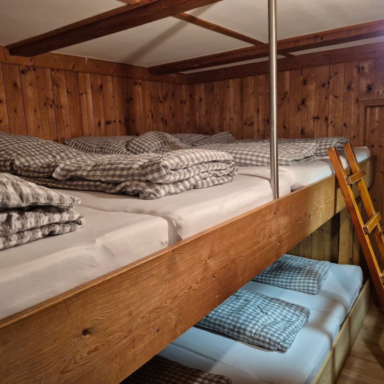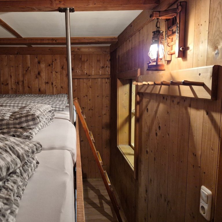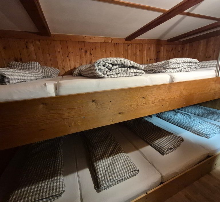 Unser Bettenlager bietet Platz für bis zu 10 Gäste. Bettwäsche wird von uns gestellt. Es gibt ein gemeinschaftliches Waschzimmer im Flur.